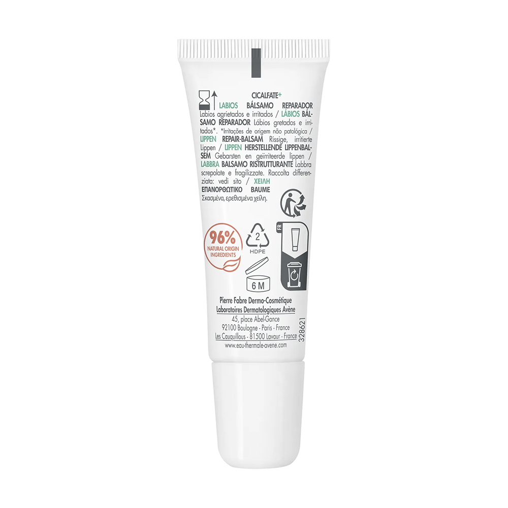 Avène Cicalfate+ Herstellende Lippenbalsem 10ml met 96% aan bestanddelen van natuurlijke oorsprong laat de lippen al na het eerste gebruik weer comfortabel en soepel aanvoelen. Geschikt voor het hele gezin. De formule is verrijkt met [C+-Restore]™, een nieuw postbiotisch actief bestanddeel met herstellende werking, en met Thermaal Water van Avène. Hij verzacht de lippen en oefent beschermend barrière-effect uit. De nieuwe formule van deze herstellende lippenbalsem zorgt ervoor dat zeer droge, gebarsten en geïrriteerde lippen binnen de 48 uur** worden hersteld. Dit zeer waterbestendige product beschermt de lippen, hydrateert ze 24 uur lang** en voedt ze diepgaand. Op milieuvriendelijke wijze vervaardigde verpakking: De verpakking bestaat voor ten minste 24% uit gerecycleerd materiaal. **HI kinetics, 21 personen, eenmalig gebruik. ***Klinische score. Tolerantie- en doeltreffendheidsonderzoek onder dermatologisch toezicht bij 56 personen, min. viermaal daags gebruik gedurende 21 dagen.