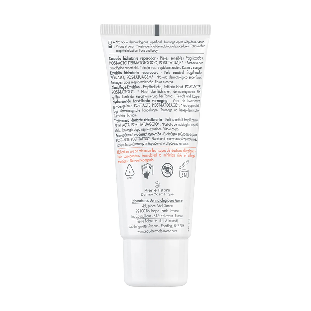 Avène Cicalfate+ Herstellende Verzorging Emulsie 40ml is een herstellende crème* voor de huid die kwetsbaar is geworden door een oppervlakkige dermatologische ingreep (peeling, laser, microneedling...) of door een tatoeage hydrateert, kalmeert en zuivert**. De Cicalfate+ Hydraterende en herstellende verzorging is bestemd voor de gevoelige gelaats- en lichaamshuid van volwassenen en bestaat uit 91% ingrediënten van natuurlijke oorsprong, helpt ongemakken (verhitting, prikkend gevoel enz.) te verminderen, zorgt voor langdurige hydratatie en draagt bij tot een snel huidherstel. De formule op maat met zijn vloeibare, geurloze textuur wordt zeer goed verdragen door de geïrriteerde en kwetsbare huid. *Bevordert het herstel van de epidermis. **Tatoeage na herstelling van de opperhuid