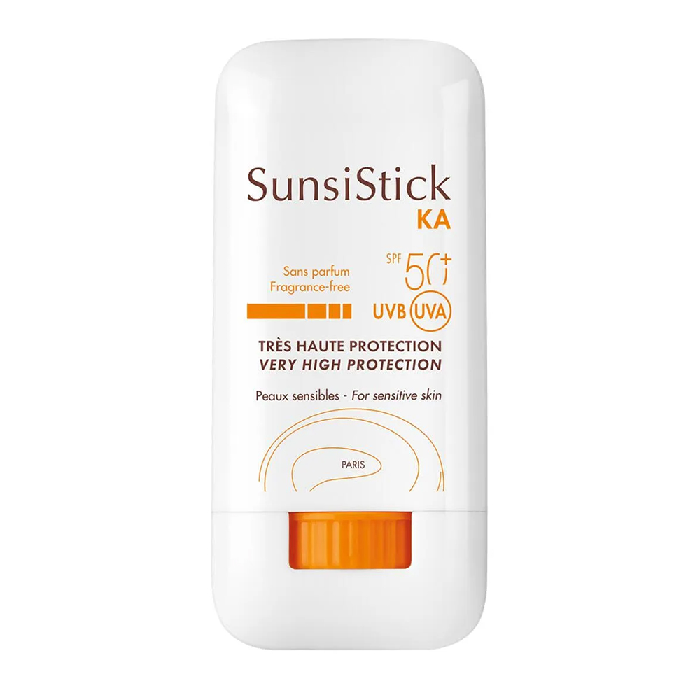 Avène SunsiMed Sunstick KA 50+ 20gr kan worden gebruikt op specifieke zones van het voorhoofd, de neus, de jukbeenderen, de schedel en de rug van de handen. Het biedt een zeer hoge dagelijkse zonbescherming voor de gevoelige, blootgestelde huid en de huid die gevoelig is voor actinische keratose. De formule met transparante finish is erg gemakkelijk aan te brengen, zelfs op de meest gevoelige zones. De formule van SunsiStick KA SPF 50+ bestaat uit een uniek complex van actieve bestanddelen, ontwikkeld door Pierre Fabre Research en samengesteld uit. De zeer hoge huidtolerantie is bewezen en geëvalueerd onder dermatologisch toezicht. Langdurig effect*. *Studie van de effecten gedurende meer dan 8 uur na een enkele toepassing, 20 personen.