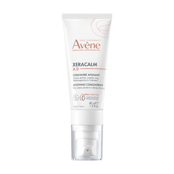 Avène Xeracalm A.D. Concentraat 40ml is een huidverzachtende concentraat in een steriele cosmetische tube. Dankzij I-modulia®, het eerste biotechnologische postbiotische actieve ingrediënt afgeleid van Thermaal Bronwater van Avène, dat jeuk vermindert, de afweer van de huid stimuleert en irritatie bestrijdt, gecombineerd met een beschermend en herstellend complex (Cer-omega en ultrageconcentreerde olie van plantaardige oorsprong) en verzachtend, irriterend en verzachtend Thermaal Water van Avène, verzacht deze SOS-behandeling voor de droge huid onmiddellijk de intense plaatselijke jeuk en irritatie*, terwijl het uitbraken van ernstige droogheid wordt verminderd. Deze formule met erkende effectiviteit bevat uitsluitend ingrediënten die nuttig zijn voor de huid. Sterile Cosmetics®, een unieke technologie waardoor het product tijdens het hele gebruik steriel blijft en een exclusieve beschermende verpakking die perfect hermetisch is, garandeert veiligheid en optimaal respect voor de huid en het microbioom van de huid. Niet-comedogene, geurvrije formule ontworpen om het risico op allergische reacties te minimaliseren. *Gekoppeld aan een droge huid. *Bevordert het herstel van de epidermis. **EMOLLIENT PLUS : Topische formule bestaande uit excipiënten en aanvullende niet-medicinale actieve bestanddelen om te helpen bij de verzorging van de droge huid met neiging tot atopisch eczeem.Erkend door de Europese deskundigen op het gebied van dermatologie (Wollenberg et al, Consensus-based European guidelines for treatment of atopic eczema (atopische dermatitis) in adults and children: part I- JEADV 2018. 32, 657-682).