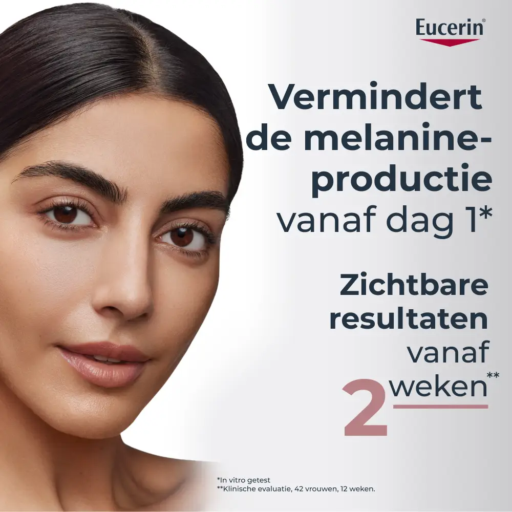 Eucerin Anti-Pigment Duo-Serum 30ml vermindert donkere vlekken zichtbaar en helpt terugkeer ervan te voorkomen bij dagelijks gebruik. Na 10 jaar onderzoek en meer dan 50.000 geteste verbindingen om het zeer effectieve gepatenteerde Thiamidol te vinden. Voor een egale en stralende teint met de eerste zichtbare resultaten na 2 weken.