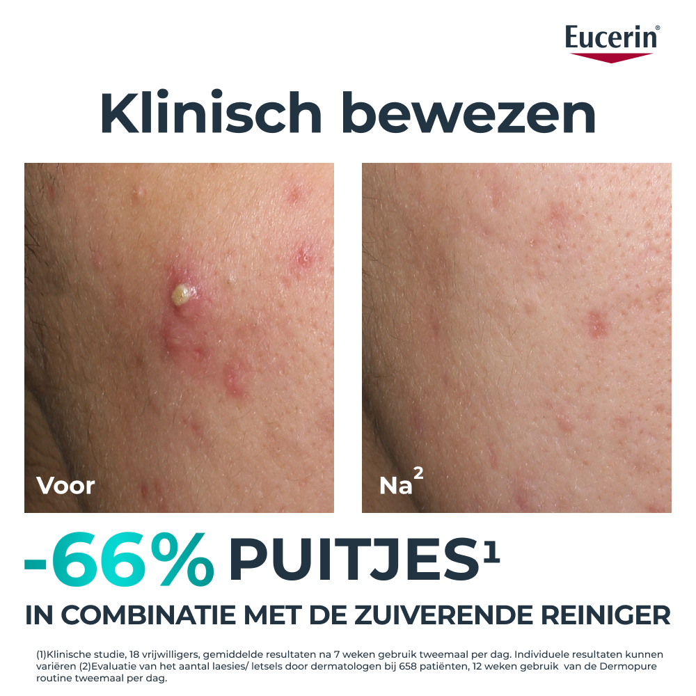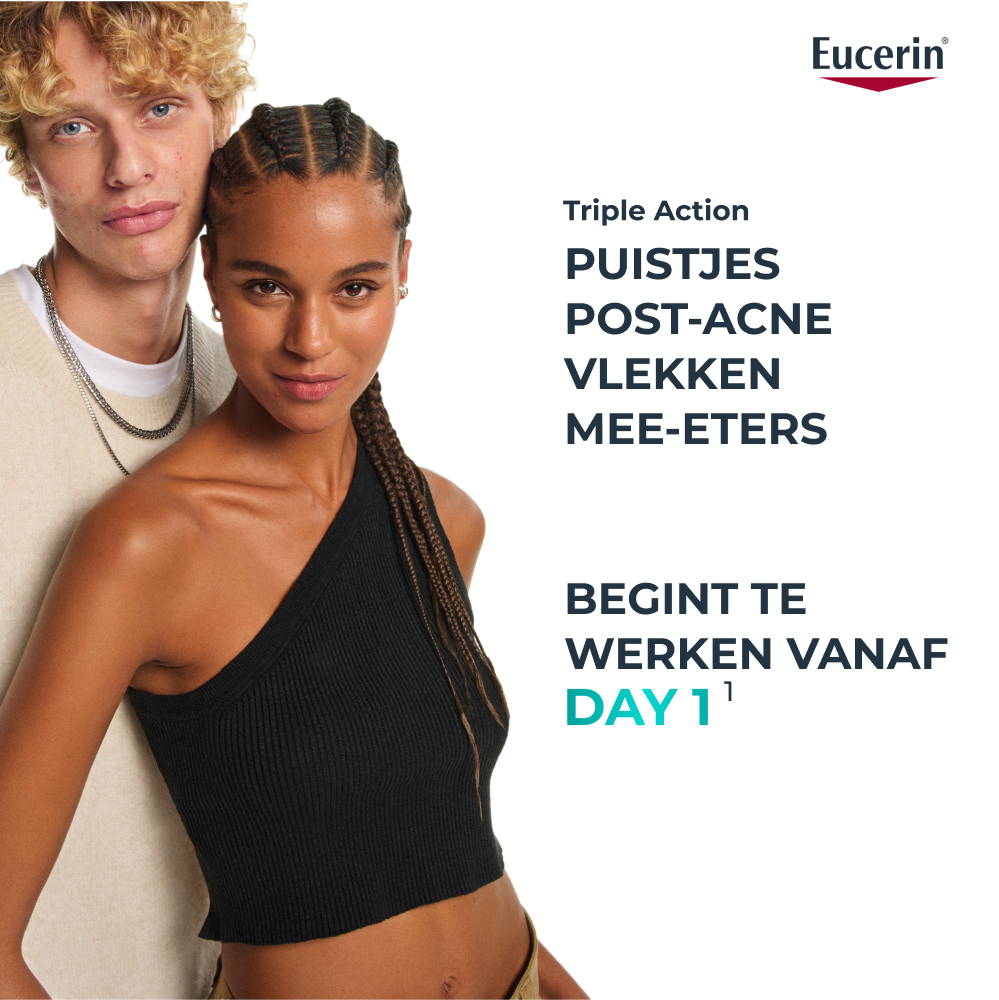 Eucerin DermoPure Triple Action Serum 40ml bevat een regulerende sebum technologie dat zorgt voor een langdurige matte en droge finish. De formule is niet vet en niet comedogeen. Het gepatenteerde Thiamidol vermindert hardnekkige vlekken na acne (post-inflammatoire hyperpigmentatie) en voorkomt terugkeer ervan. De salicylzuur vermindert onzuiverheden effectief en de licochalcone A helpt terugkeer ervan te voorkomen. 95% bevestigt: het serum helpt tegen post-acne vlekken. Klinische en dermatologische studies bewijzen: Goede huidtolerantie en doeltreffendheid op een huid vatbaar voor onzuiverheden met post-acne vlekken.