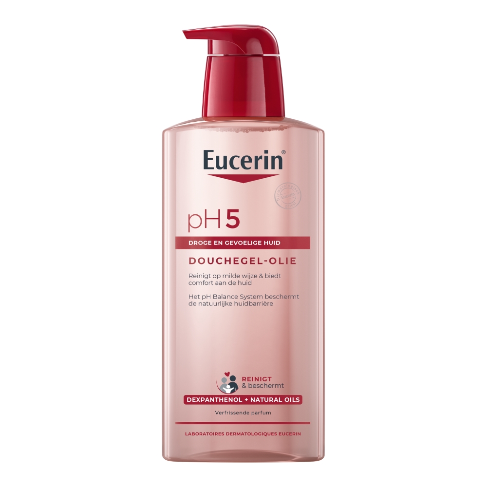 Eucerin pH5 Douchegel Olie 400ml geeft comfort aan jouw huid en bescherm deze. Ervaar een nieuw gevoel van welzijn. De gevoelige huid heeft een milde reiniging nodig om de weerstand van de huid tegen dagelijkse invloeden van buitenaf te weerstaan. De pH5 Douchegel-Olie met Dexpanthenol en natuurlijke oliën reinigt de gevoelige huid op milde wijze zonder een vettig residu achter te laten. De verzorgende formule met het pH Balance System helpt de huid de optimale pH-waarde te houden, zodat de natuurlijke huidbarrière behouden blijft. Resultaat: De huid wordt op milde wijze gereinigd en de pH-waarde wordt gestabiliseerd. De huid wordt gehydrateerd en voelt glad en comfortabel aan. Klinische en dermatologische studies bewijzen: Zeer goede doeltreffendheid en huidverdraagzaamheid bij een gevoelige en droge huid, zelfs een huid met neiging tot huidaandoeningen. 98% gerecycleerde fles*. *Fles gemaakt van 99% gerecycleerd materiaal - label en pomp uitgezonderd