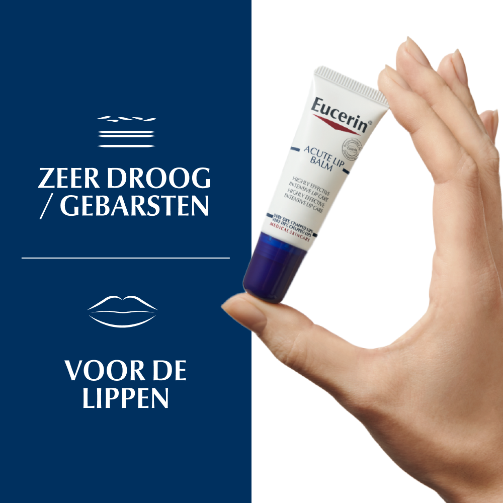 Eucerin Acute Lip Balm 10ml is een zeer doeltreffende oplossing voor extreem droge, gebarsten of ruwe lippen; Verzachtende licochalcone A vermindert roodheid en kalmeert irritatie, Teunisbloemolie herstelt de natuurlijke beschermingsbarrière van de lippen Panthenol hydrateert, herstelt en stimuleert genezing Glycerol hydrateert intensief, zodat de lippen zacht en glad aanvoelen. Eucerin Kalmerende Lippenbalsem is ook geschikt voor gebruik op de periorale huid rond de mond en voor aandoeningen zoals lipeczeem, cheilitis of droge lippen door het gebruik van geneesmiddelen. Wij hebben een gecontroleerd gebruiksonderzoek van twee weken naar Eucerin Kalmerende Lippenbalsem uitgevoerd onder 58 mensen met droge, ruwe lippen. De proefpersonen waren onder meer kinderen jonger dan 12 jaar en patiënten met aandoeningen zoals lipeczeem, atopische dermatitis of xerose.
