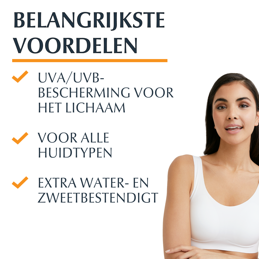 Breng de zonnebescherming royaal aan vóór blootstelling aan de zon en breng regelmatig opnieuw aan, vooral na het zwemmen, transpireren en afdrogen zodat de bescherming in stand wordt gehouden. Vermindering van de hoeveelheid verlaagt de mate van bescherming significant. Blijf niet te lang in de zon, zelfs niet wanneer u een zonnebeschermingsproduct gebruikt. Overmatige blootstelling aan de zon vormt een ernstige bedreiging voor de gezondheid. Houd baby’s en jonge kinderen uit de volle zon. Laat het product intrekken en vermijd direct contact met textiel en harde oppervlakken om vlekken te voorkomen.