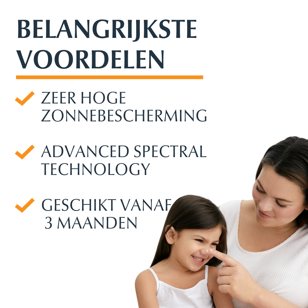 Eucerin Sun Sensitive Protect Dry Touch Kids Gel-Crème SPF50+ 200ml combineert UVA/UVB-filters voor een zeer hoge UV-bescherming en antioxidant Licochalcone A, dat vrije radicalen gegenereerd door UV en hoog energetisch zichtbaar licht neutraliseert. Glycyrrhetinezuur ondersteunt het natuurlijk mechanisme van de huid. Klinische en dermatologische studies bewijzen: Zeer goede huidverdraagzaamheid bij de gevoelige huid van kinderen, zelfs bij de huid met neiging tot atopie.
