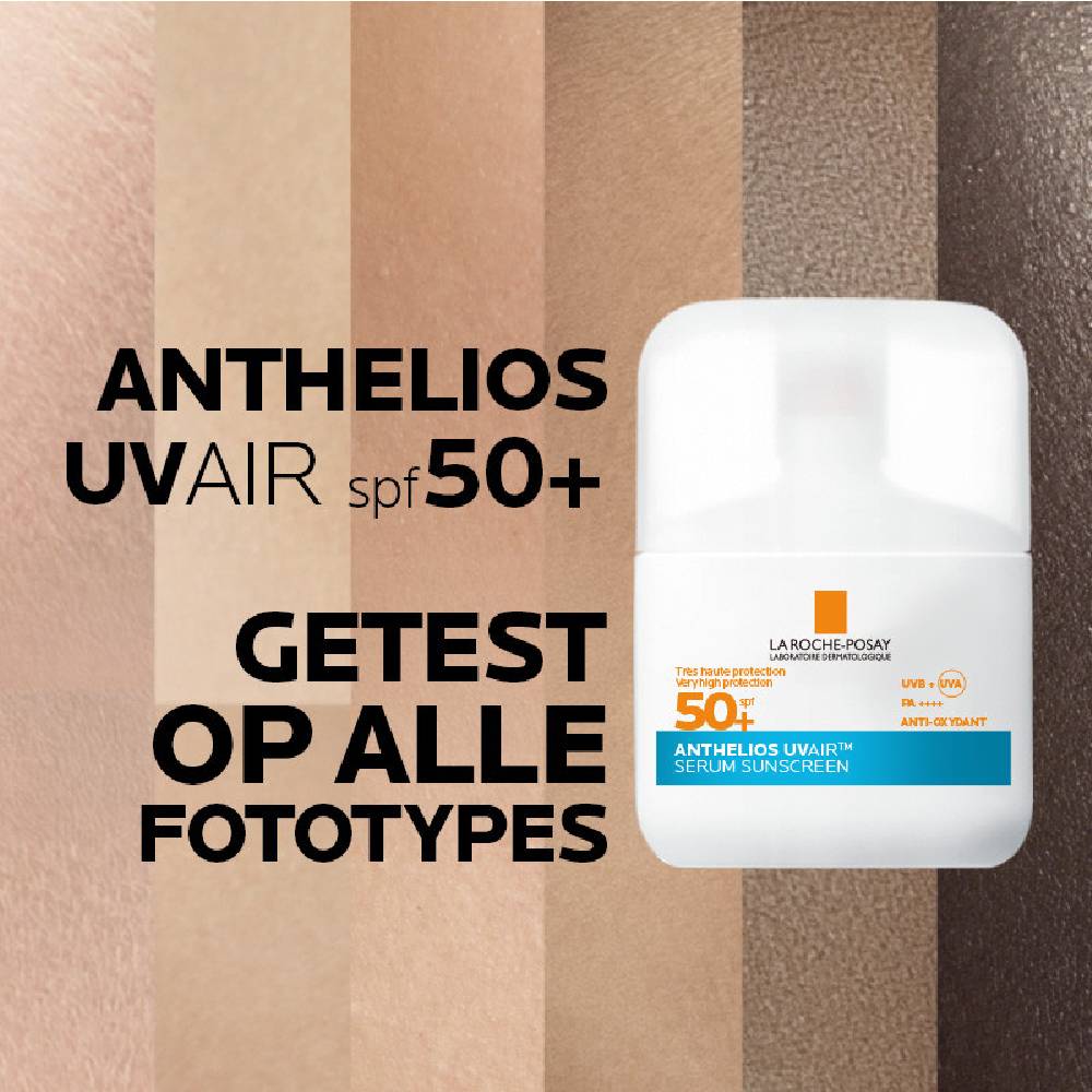 La Roche-Posay Anthelios UVAIR Serum Zonnebrand SPF50+ is een innovatieve zonbescherming die de huid perfectioneert met een vederlichte, natuurlijke finish.