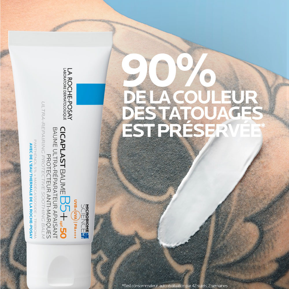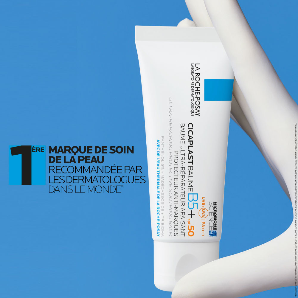 La Roche-Posay Cicaplast Balsem B5 SPF50 40ml is een crème die de verzwakte huid herstelt en tegelijkertijd beschermt tegen dagelijkse externe agressies. Dankzij de hoge UVA/UVB-bescherming SPF50 en het gepatenteerde ceramide Procerad™ voorkomt het rode of bruine littekens. Het is geschikt voor alle huidtypes, zelfs voor een gevoelige huid, en kan zowel door kinderen als door volwassenen worden gebruikt. De balsem helpt de kleur van tatoeages te behouden. De rijke en voedende textuur zorgt voor een gevoel van comfort en onmiddellijke verlichting. Het wordt aanbevolen door dermatologen, net als alle producten van La Roche-Posay, het nummer 1 merk aanbevolen door dermatologen wereldwijd. * Deze balsem bevat vitamine B5 (Panthenol), tribioma en madecassoside en biedt een volledige preventieve, verzachtende en herstellende werking. Breng de balsem 's ochtends en 's avonds aan op een eerder gereinigde huid, met behulp van cirkelvormige, masserende bewegingen. Breng gerust een dikke, royale laag aan. *Marktonderzoek in de dermocosmetische markt uitgevoerd door AplusA en andere partners tussen januari 2021 en juli 2021, bij dermatologen in 34 landen, wat 82% van het wereldwijde BBP vertegenwoordigt. Na 1 maand gebruik vinden patiënten dat Cicaplast Baume B5+ SPF50: roodheid vermindert met 80,6%*; het branderige gevoel vermindert met 72,6%**; een trekkerig gevoel vermindert met 85,1%**; een prikkelend gevoel en pijn vermindert met 93,7%**. *Gebruikstest op 67 personen gedurende 4 weken. **Gebruikstest op 95 personen gedurende 4 weken.
