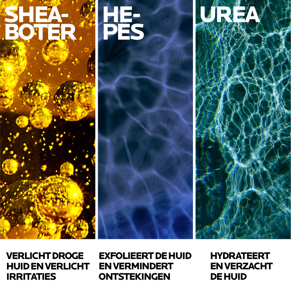 La Roche-Posay Lipikar Lait Urea 10% Lichaamsmelk 400ml is een vocht inbrengende lotion voor de zeer droge, ruwe en schilferige huid. Dankzij het actieve ingrediëntencomplex bestaande uit 10% ureum, HEPES en sheaboter wordt de huid tot 48 uur lang intensief gehydrateerd. Tegelijkertijd heeft de ureum lotion een kalmerende werking en versterkt het effectief de beschermende barrière van de huid. Verbetert zichtbaar het aanzien van de droge huid door bij te dragen aan het elimineren van schilferige en ruwe zones. Klinisch getest op de huid die gevoelig is voor keratosis pilaris, xerosis en psoriasis. Geschikt voor de zeer droge, ruwe en schilferige huid. Voor kinderen, volwassenen en ouderen. 48 uur anti-irritatie *Klinisch onderzoek bij 49 personen, toepassing gedurende 14 dagen en meting 2 dagen na de laatste toepassing. 86% ervaart onmiddellijk een zacht gevoel *Klinisch onderzoek bij 54 personen na 1 keer gebruik.