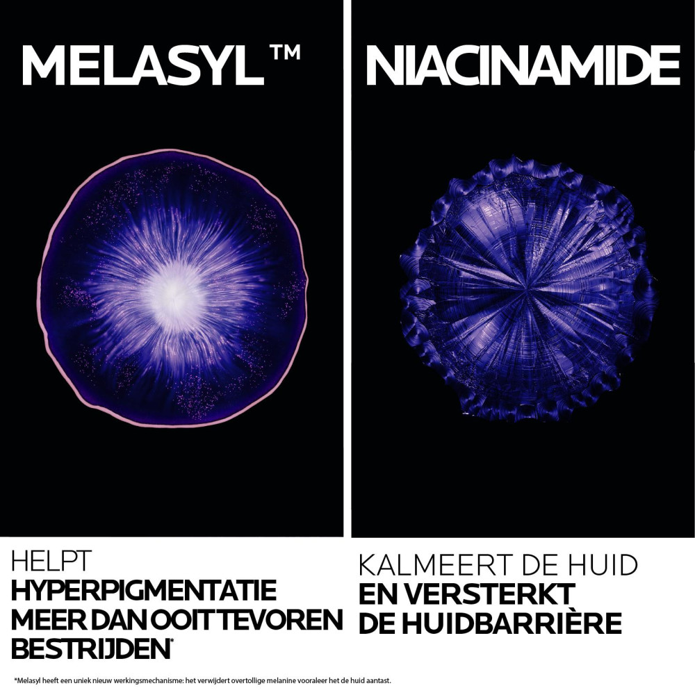 - Formule verrijkt met ons nieuwe gepatenteerde actieve ingrediënt Melasyl dat helpt pigmentvlekken te verminderen, de teint egaler en helderder te maken
