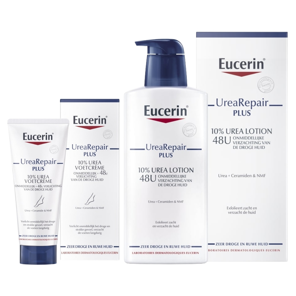 Eucerin UreaRepair Plus Voetcreme 10% Urea 100ml herstelt door de zeer droge huid zacht te maken. Speciaal voor de verzorging van voeten met een droge, zeer droge, ruwe huid met kloven, eelt en eeltknobbels. Kan als aanvullende verzorging gebruikt worden in geval van diabetes, atopisch eczeem en psoriasis.