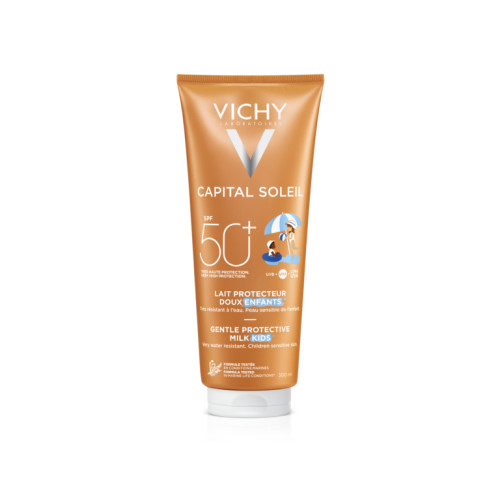 Vichy Capital Soleil Hydraterende Zonnemelk Kind SPF50 300ml is ideaal voor het hele gezin: deze zonnemelk met zeer hoge beschermingsfactor, die ook geschikt is voor een gevoelige huid en de meer kwetsbare huid van kinderen. Het is belangrijk om jonge kinderen goed in te smeren, want ze spelen veel buiten. Het is een vloeibare, niet-plakkerige formule die gemakkelijk verspreidt over de huid en snel intrekt. De zonnebrand voor kinderen laat bovendien geen witte strepen achter. Capital Soleil zonnebrand kinderen SPF50 is geschikt voor de gevoelige huid van kinderen Alle Vichy-producten zijn getest zodat ze geschikt zijn voor een gevoelige huid, onder toezicht van dermatologen en kinderartsen.