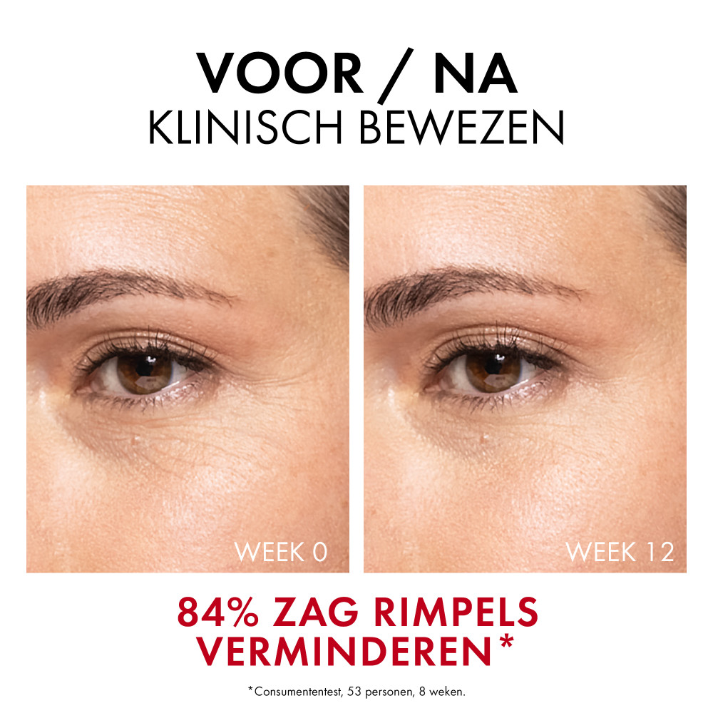 - Bestrijdt 16 tekenen van huidveroudering: wallen, donkere kringen, rimpels onder de ogen, kraaienpootjes, fijne lijntjes, stevigheid, verslapping, soepelheid, huidtextuur, tekenen van vermoeidheid, toniciteit, veerkracht, glans, elasticiteit, hydratatie, uniformiteit