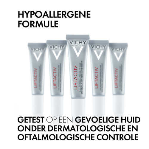 Vichy Liftactiv H.A. Anti-Rimpel Verstevigende Oogcrème 15ml is Vichy’s allereerste anti-aging oogcrème met een 360° liftend effect van de gehele oogzone, speciaal geformuleerd voor vrouwen vanaf 40 jaar. Anti-rimpel, verstevigende oogcontourverzorging met hyaluronzuur. Corrigeert rimpels en donkere kringen. Verrijkt met hyaluronzuur en vitamine Cg, hydrateert en versterkt het de oogcontour om de oogcontour weer te laten stralen.