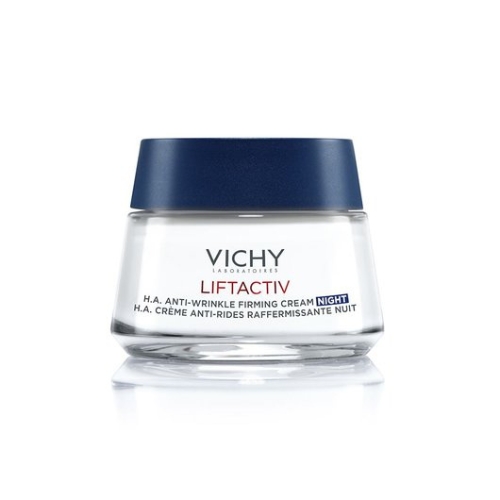Vichy Liftactiv H.A. Anti-Rimpel Nachtcrème 50ml is Vichy’s krachtige anti-aging lijn, met doeltreffende formules die rimpeltjes en een slappe huid gericht aanpakken voor een stevigere, gladdere huid. Ideaal voor vrouwen vanaf 40 jaar. ’s Nachts doet deze nachtcrème het harde werk voor je. Door de leeftijd en externe agressoren neemt de aanmaak van hyaluronzuur in de huid af, wat leidt tot rimpels en minder stevigheid. De oplossing van Vichy is H.A. ANTI-RIMPEL VERSTEVIGENDE NACHTCRÈME, voor de aanpak van fijne lijntjes, rimpels en verlies van stevigheid. Hydrateert de huid grondig en herstelt het hyaluronzuurgehalte in de huid voor een voller effect. Liftactiv H.A. Anti-Rimpel Verstevigende Crème - Nacht - 50 ml heeft een onmiddellijk gladstrijkend effect. De formule dringt snel door in de huid, en het biedt een fris, comfortabel gevoel aan het gezicht. Na aanbrengen: (1) +44% STRAKKER Na 2 maanden: (2) -20% RIMPELS Zelfbeoordeling: (3) 94% geeft aan dat de huid gladder is 93% geeft aan dat de huid meer straalt 94% geeft aan dat de huid gehydrateerder oogt (1) Klinische score, 40 vrouwen, na één keer aanbrengen (2) Klinische score, oppervlakte rimpels, 49 vrouwen, 2 maanden. (3) Zelfbeoordeling, 52 vrouwen, 4 weken